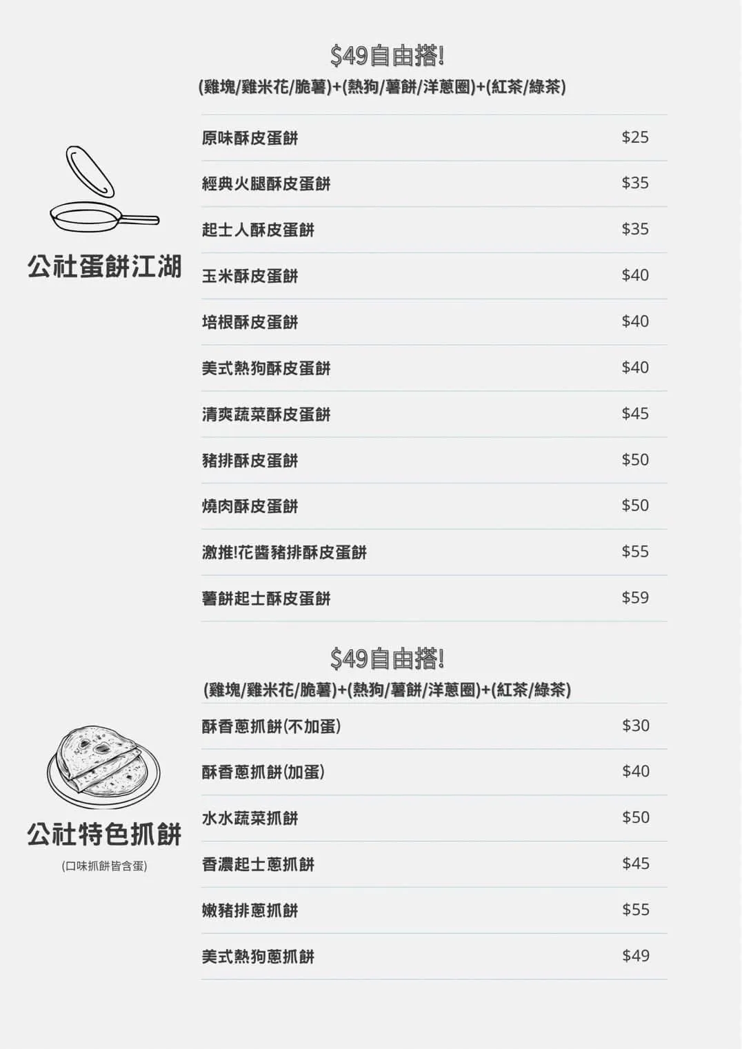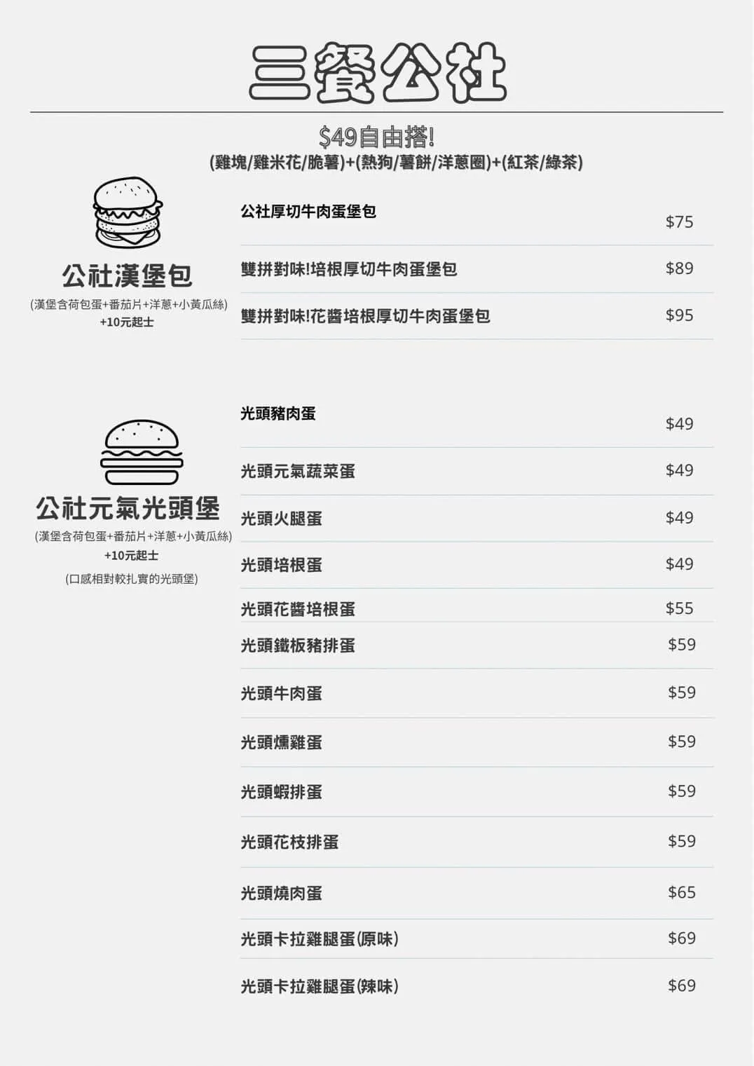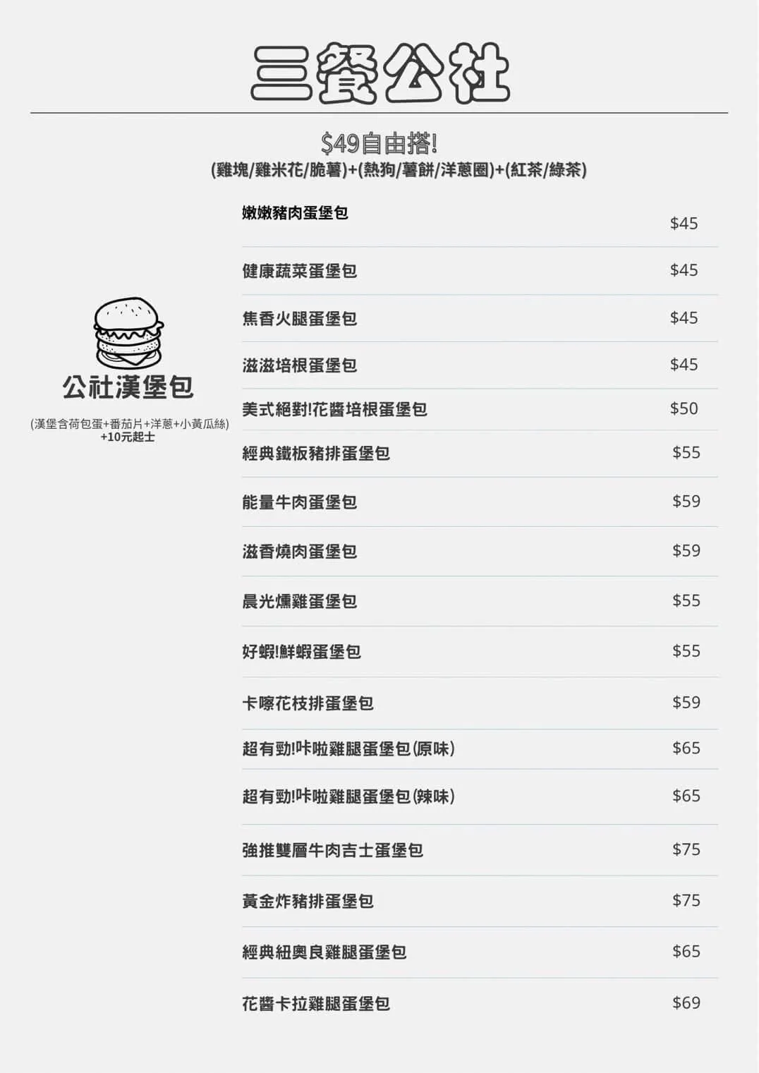 餐點提供從西式早午餐(漢堡、吐司、蛋餅、捲餅)到中式便當、