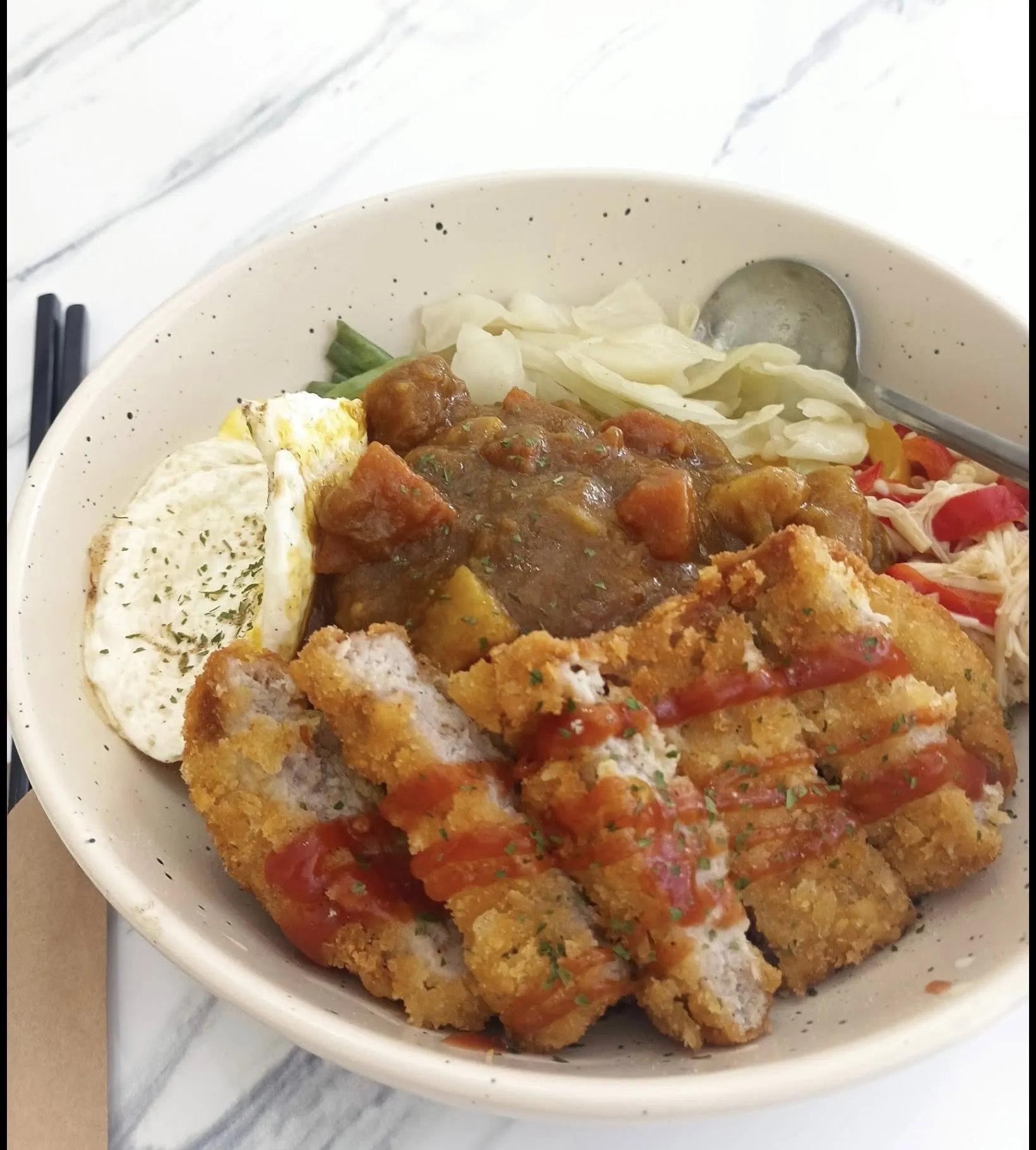 雙層手打豬肉排的紮實口感,且份量適中,減肥中的女生也能輕鬆吃。