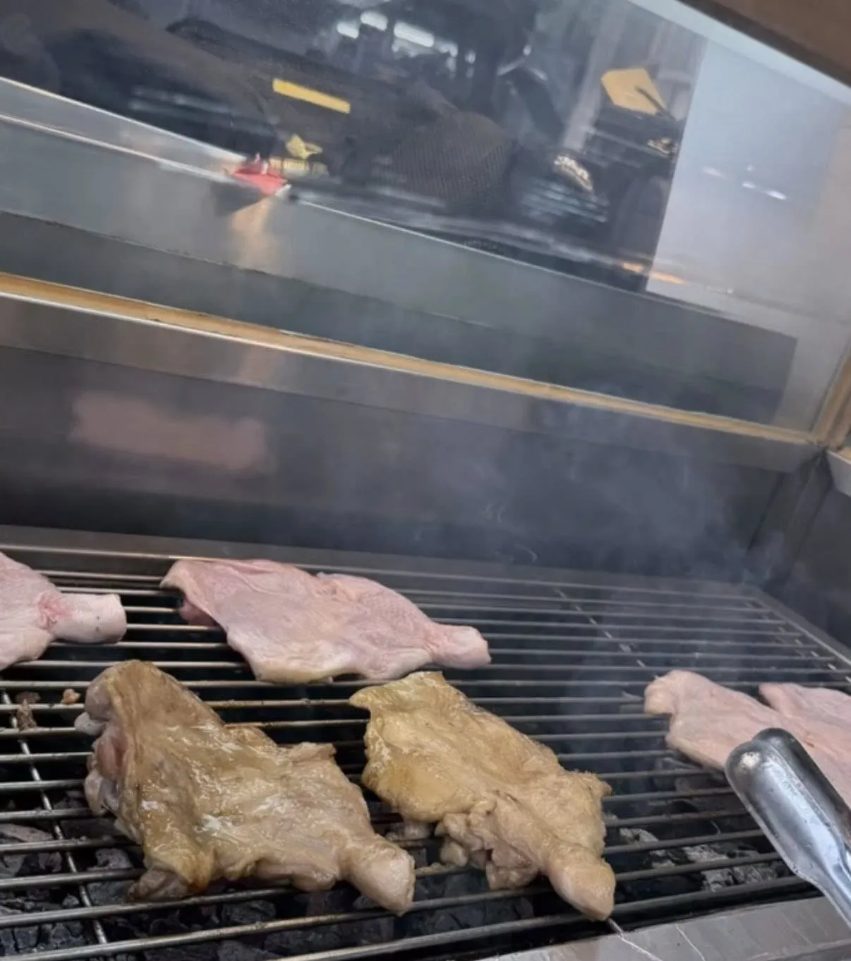 雞腿烤起來很香。醬汁和芝麻香味。不柴
