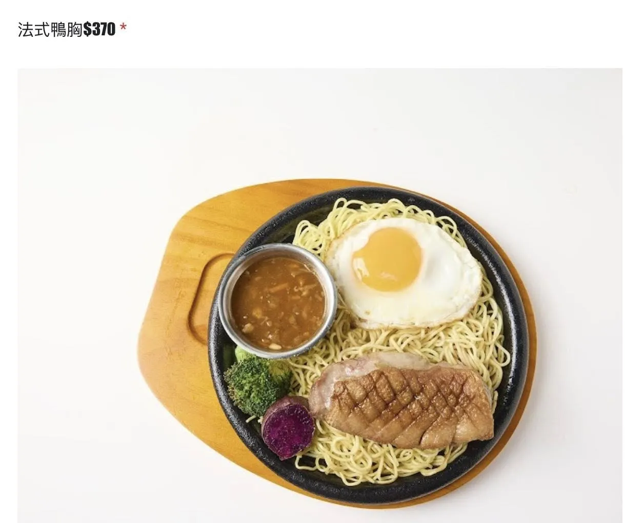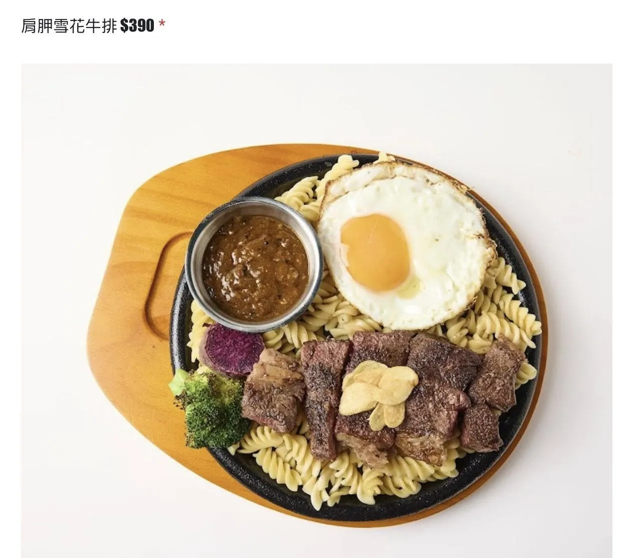牛肉油花在鐵板吱吱響、搭配油封蒜醬、
