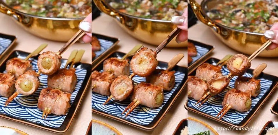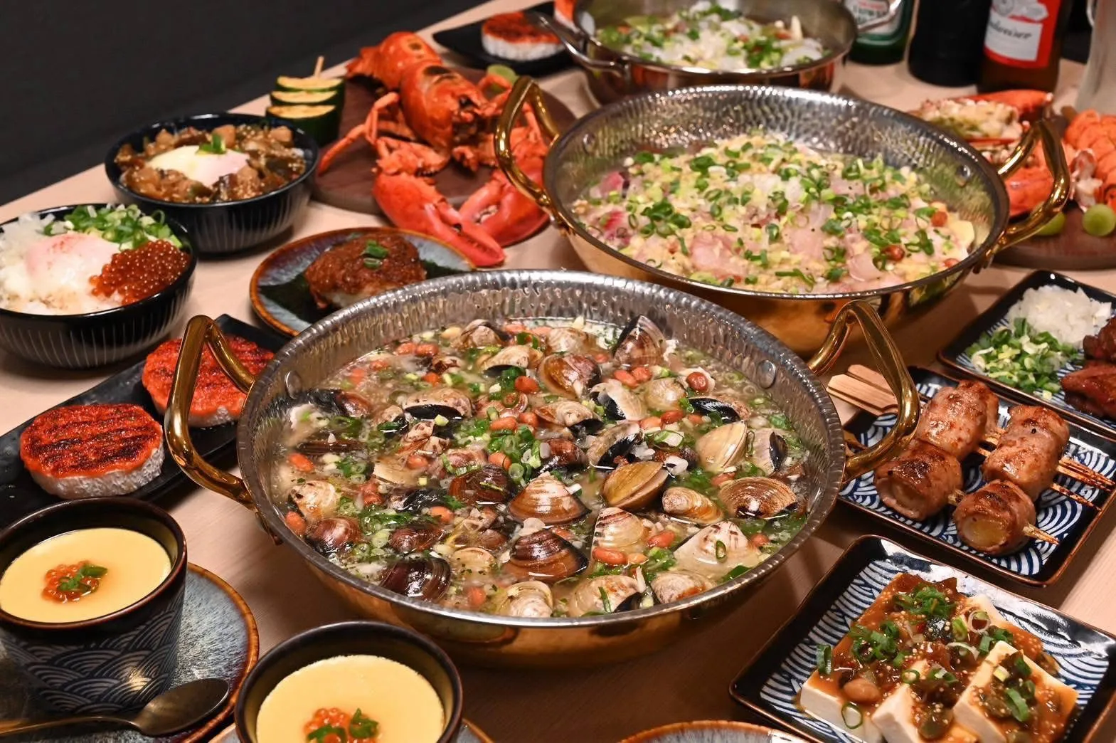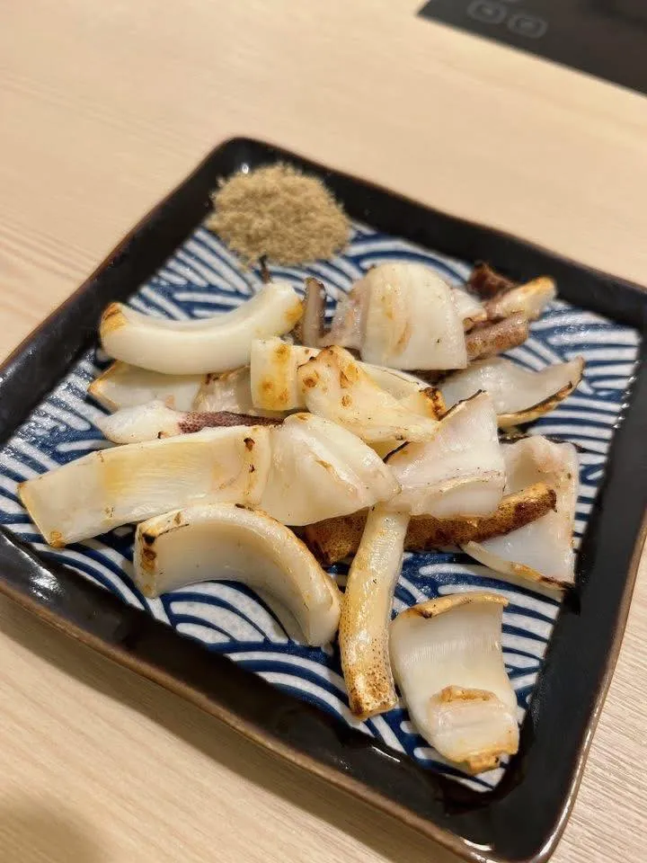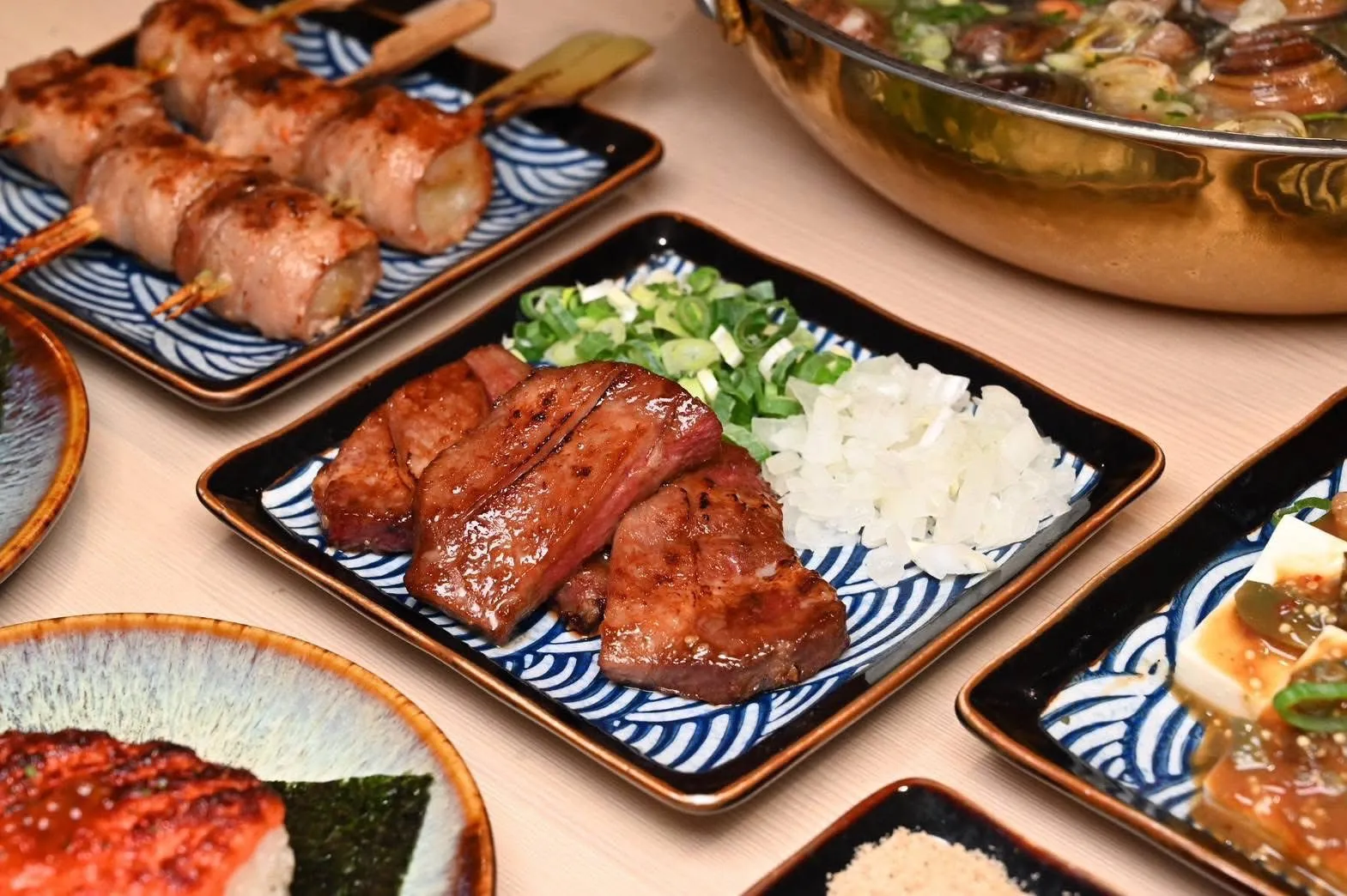 如厚切牛舌、烤帝王蟹腳、軟絲等,搭配火鍋一同享用。