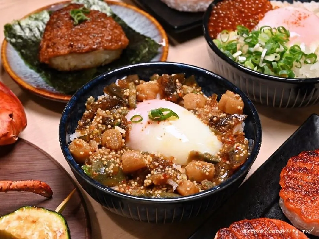 鮭魚卵溫泉蛋飯、皮蛋豆腐、明太子小飯糰等,口味獨特。