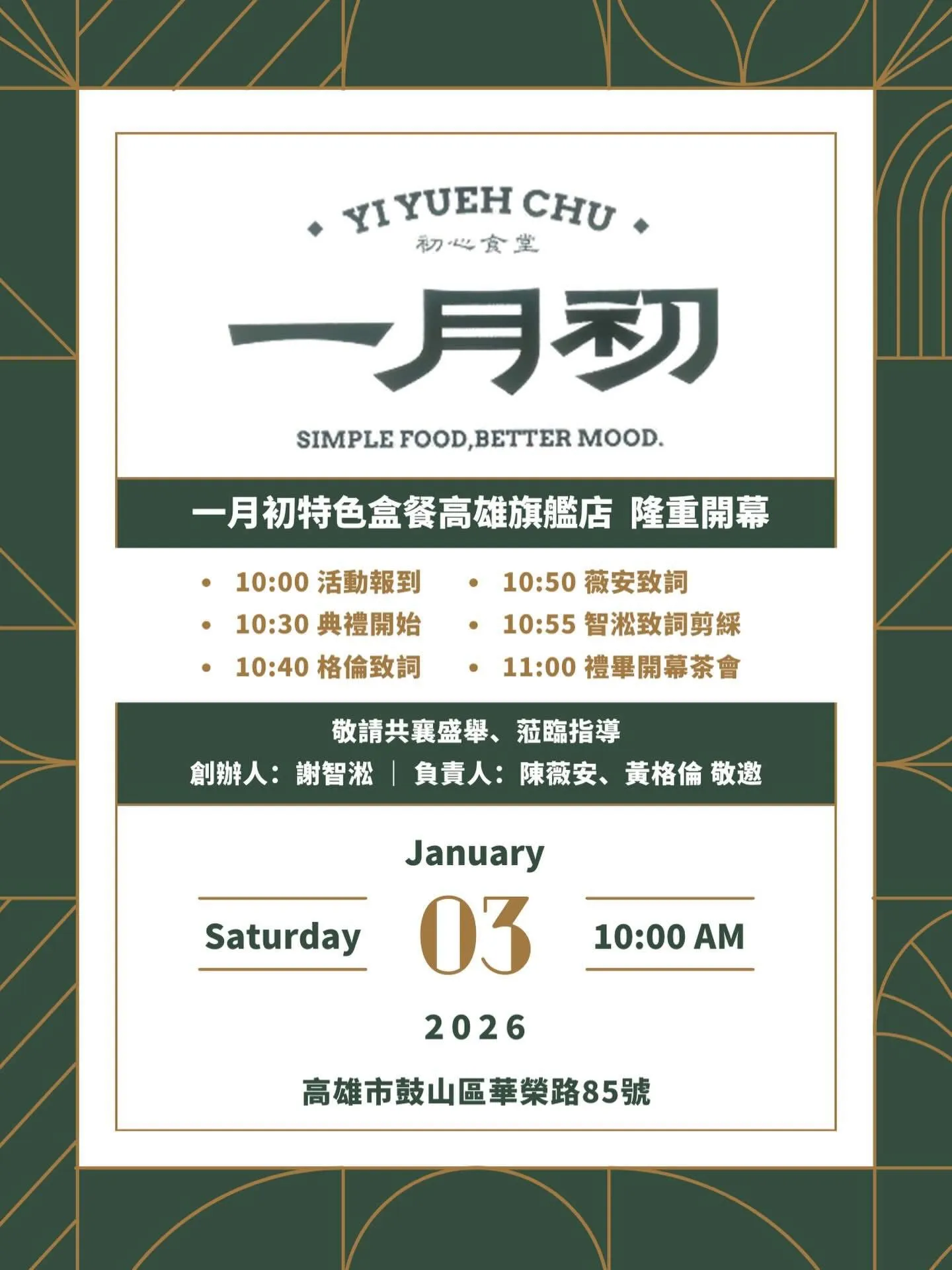 一月初堅持提供健康、美味的餐點,從食材選擇開始,嚴格把關,